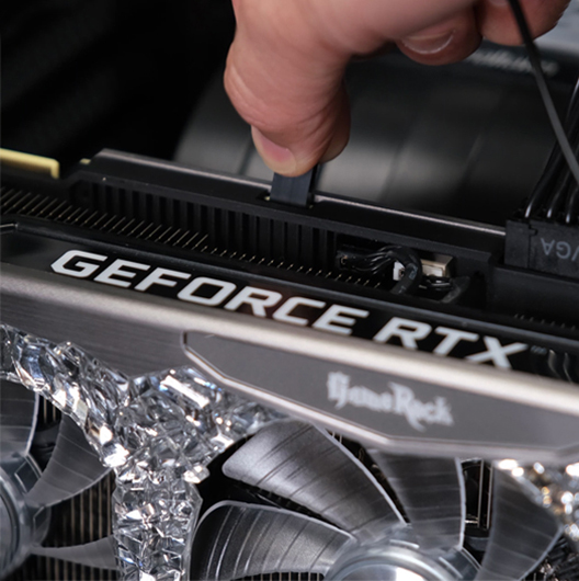 ARGB SYNC simplifies your lighting setup. A single cable allows your GPU lighting to be fully synchronized by the motherboard or other ARGB devices. Just plug it in and enjoy seamless lighting consistency.