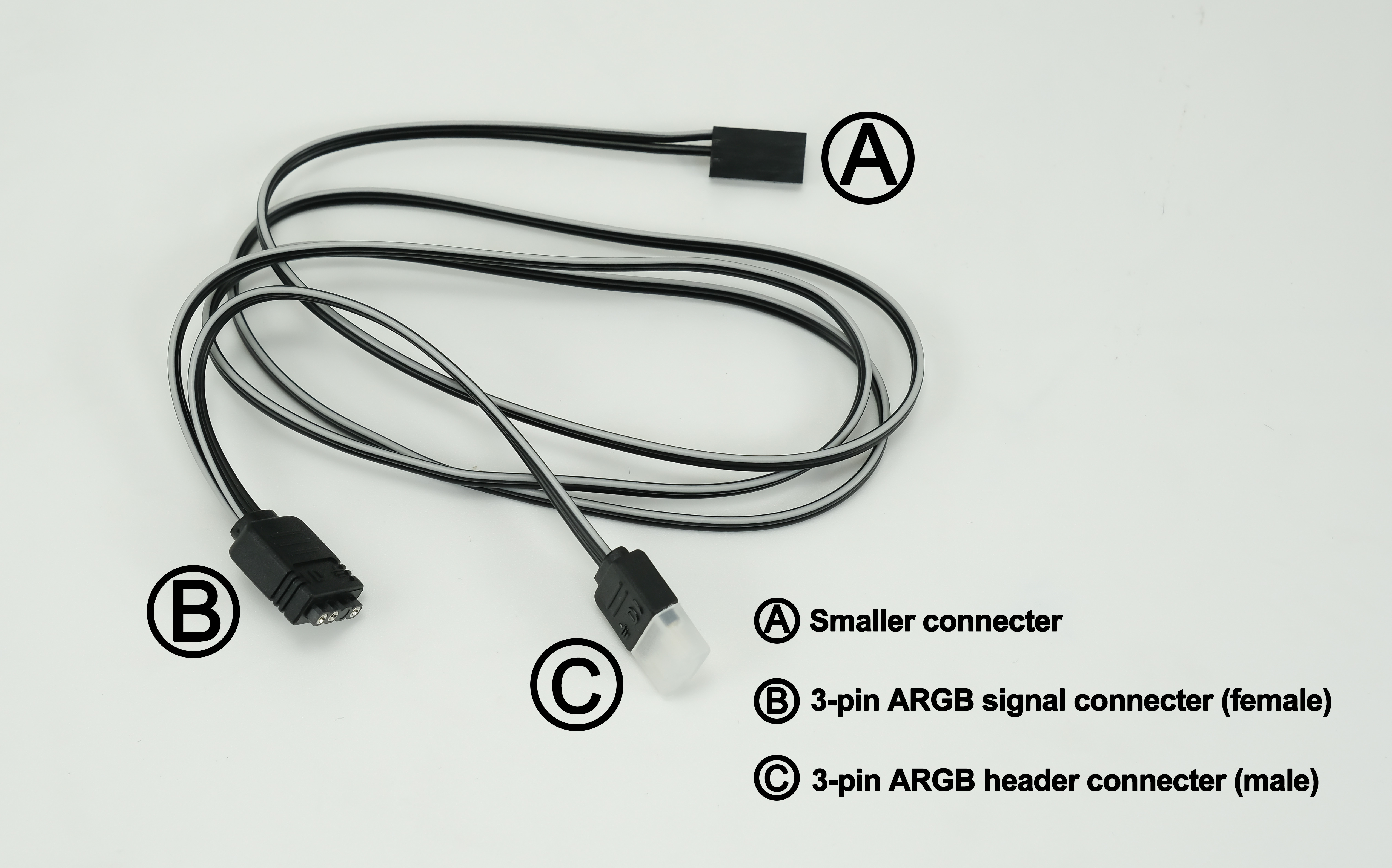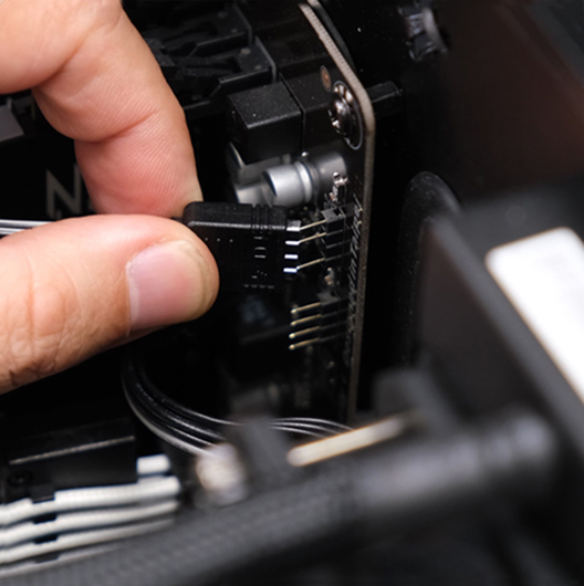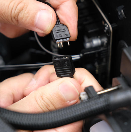 Connect Ⓑ (female) connector to the motherboard or other ARGB controller. NOTE: The ARGB strip supports 5V only (from the motherboard header or ARGB controller.) Incorrect connection may lead to damage of the strip.