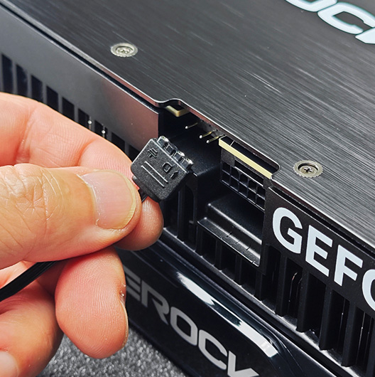 Connect the smaller end Ⓐ to GPU’s connector. The connector is non-directional, so you don’t need to worry about damaging the card with wrong connection.